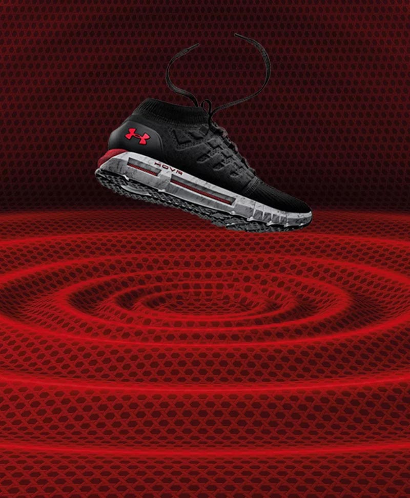 Nismo željeli da nas bilo šta, pa ni gravitacija, usporava. Zato smo napravili potpuno novi tip pjene i umotali je u kompresionu mrežu Energy web. Ne samo da je dovoljno meka da apsorbuje udarce, već takođe vraća energiju I gura vas naprijed. Nazvali smo je UA HOVR jer daje osjećaj nulte gravitacije.